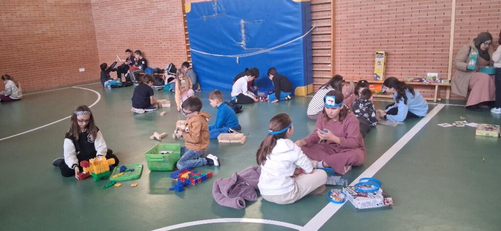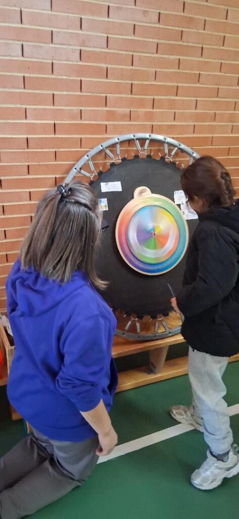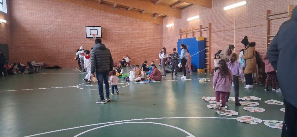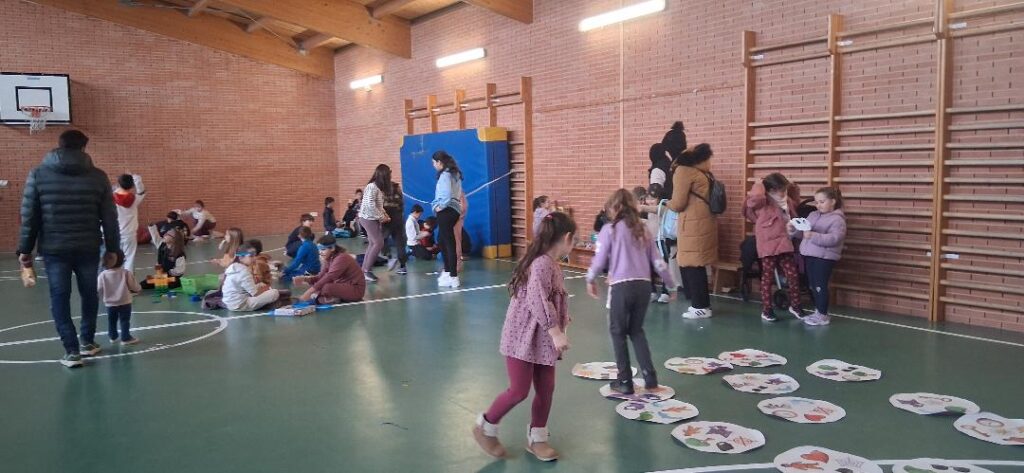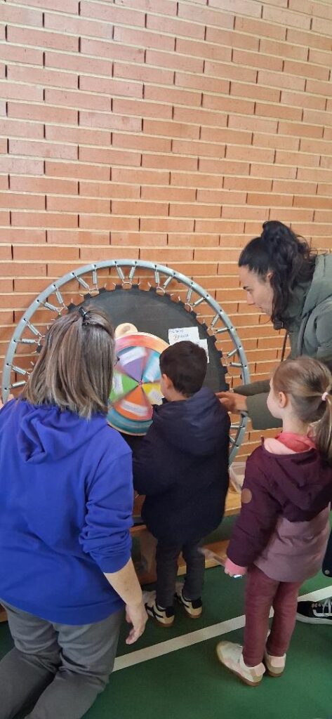 En la fiesta final del sábado en el gimnasio del CEIP Pablo Picasso acudieron 200 niños y niñas en busca de sus recompensas por ir andando al cole, tirando en la ruleta de premios.